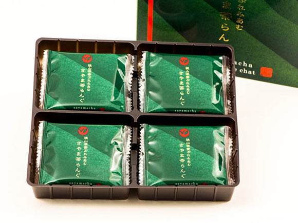 お茶をイメージした深い緑色のパッケージが印象的。お菓子自体も鮮やかなグリーンで、狭山茶を全面に押し出したおみやげです。