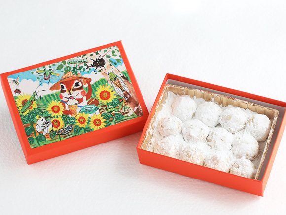 たびたびテレビや雑誌でも紹介される、このお店を代表する贈り物が、可愛らしいりすの絵が描かれたくるみのクッキーです。