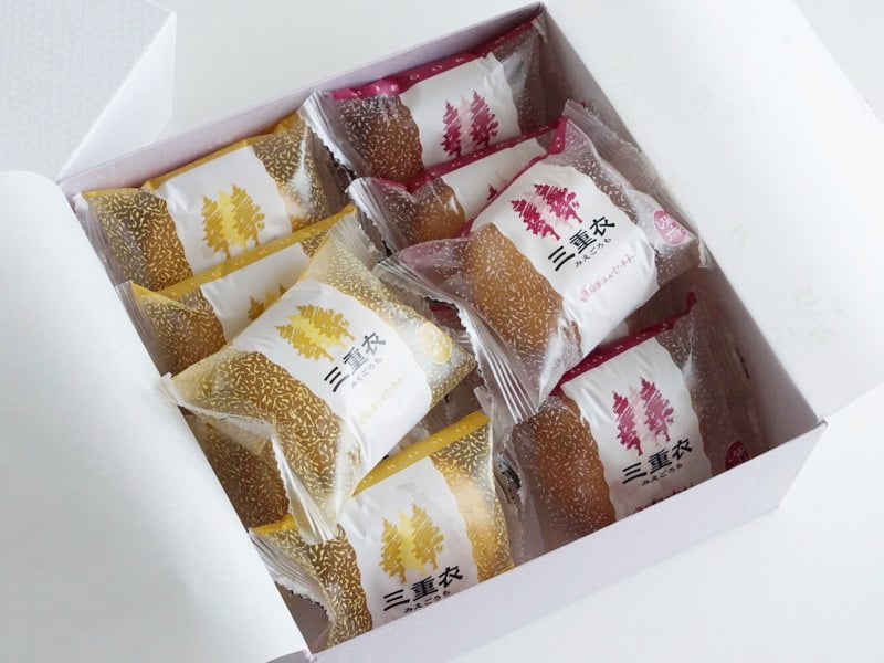 三重に衣を重ねたような、素材のハーモニーが楽しめるお菓子ですよ。