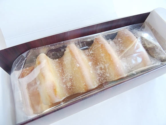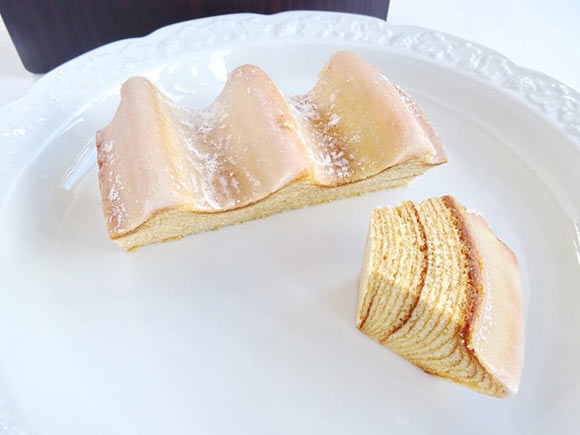 バウムクーヘンの形は特徴的な山型。山型の表面にはうっすらとした砂糖の層があります。