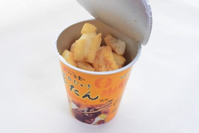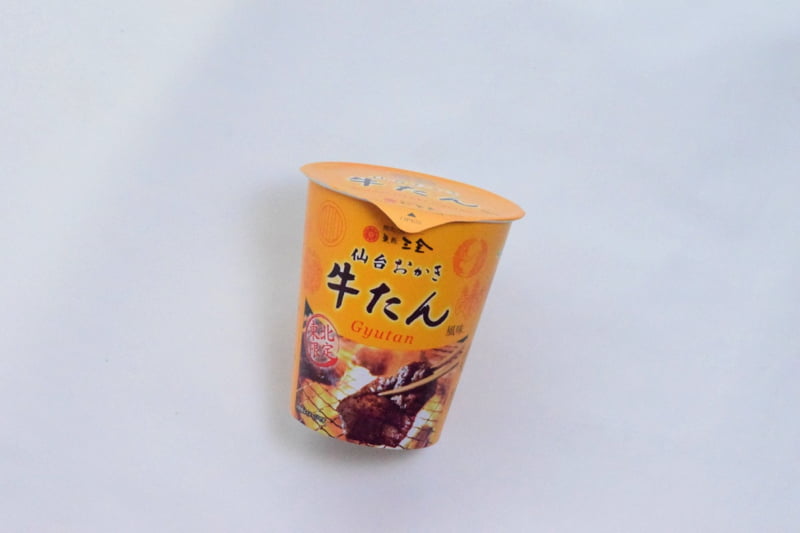 ”じゃがりこ”のようなカップ型の容器に入っているおかきは珍しいと思いながら手を伸ばして購入したのがこちらの”仙台おかき 牛たん風味”です。