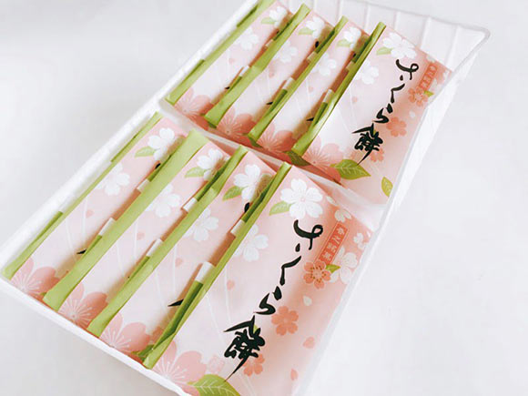 桜のピンク色と、葉っぱの黄緑色のコントラストがうつくしい個包装。