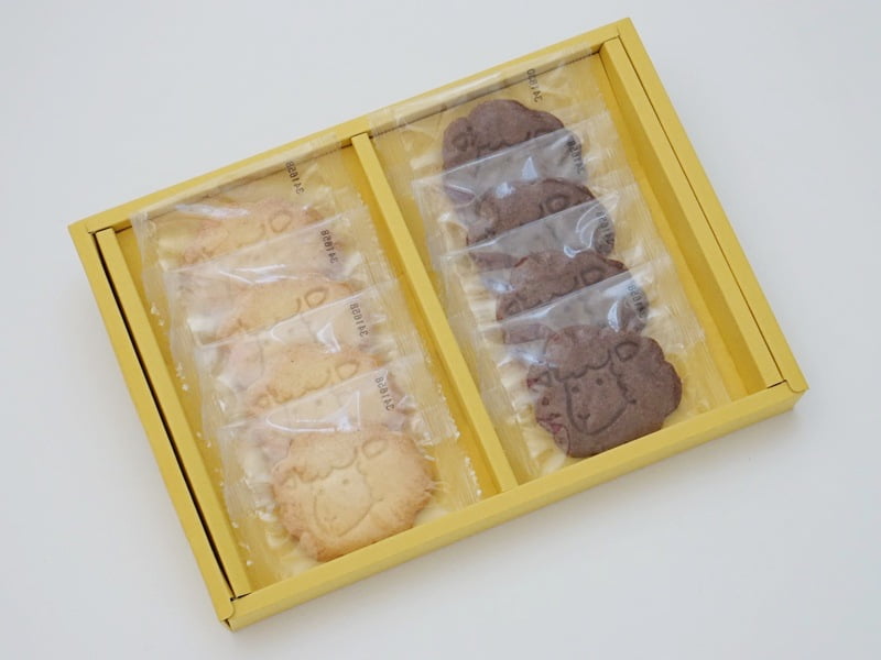 かわいらしいひつじの顔を形どった、2種類の味のサブレ詰め合わせです。