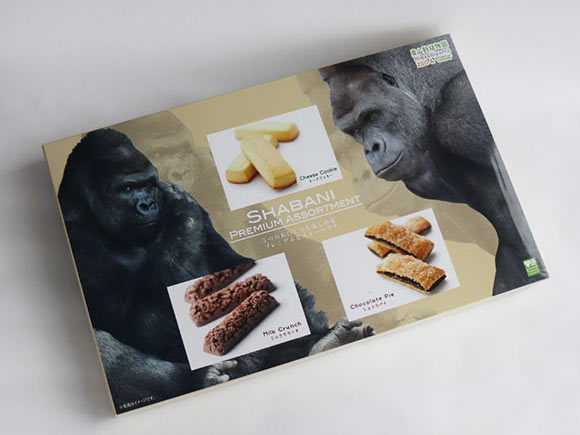 パッケージになっているシャバー二は「イケメンゴリラ」として知られる東山動植物園の人気者。2007年にオーストラリアからやってきたニシローランドゴリラ。表情がイケメンなことから話題となり、本やDVDなども発売されています。