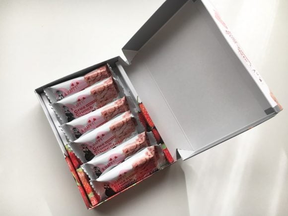 優しい甘みのいちごチョコレートと合わさることで重みのあるざっくりとした食べ心地がよく、一箱に6個しか入っていないので高級感も感じます。