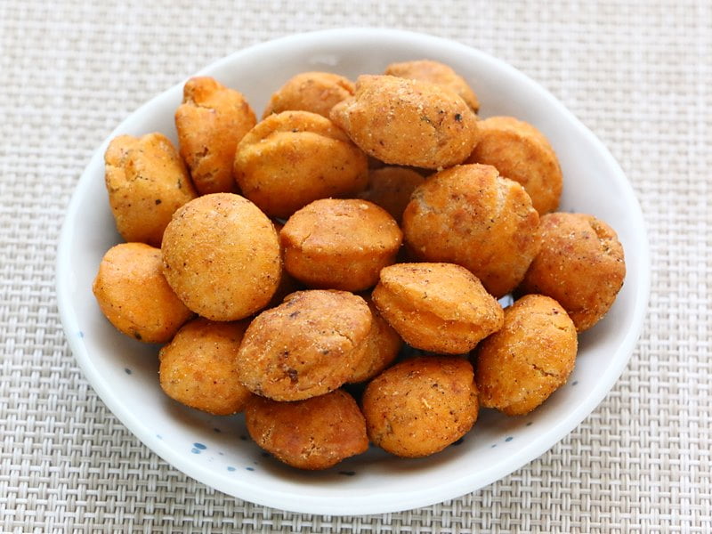 京の町かど 七味道楽は七味唐辛子、山椒などを使用したエスニックな豆菓子です。
