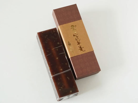 北海道産小豆を職人がじっくりと練り上げ、食感とコシを残して仕上げた羊羹は、さっぱりとした甘さが特徴です。