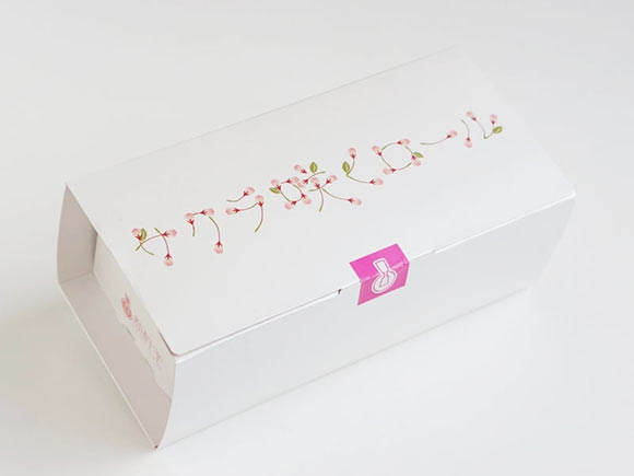 箱の外側は白地でシンプルですが、文字が桜のつぼみで表現されていることがわかりますね。