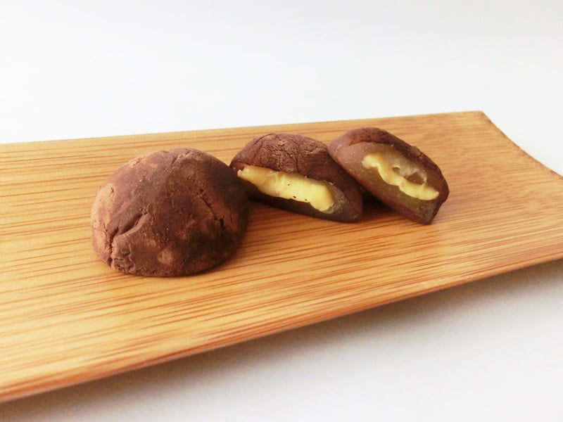 ひと口サイズの餅にバナナクリームを入れ、きめ細やかなチョコパウダーでコーティングした大福です。バナナとチョコレートのベストマッチと、柔らかな餅の食感をご堪能ください。