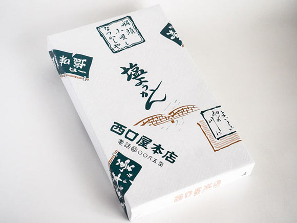 西口屋本店は落合地区周辺でつくられている伝統的な羊羹「落合羊羹」の製造で知られていますが、塩味の塩羊羹も扱っています。