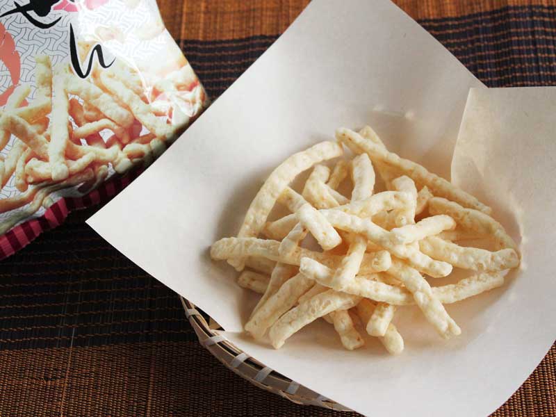 噛めば噛むほどおいしさに満たされる「白っえびせん」は食べ始めたら最後、食べる手が止まりません。