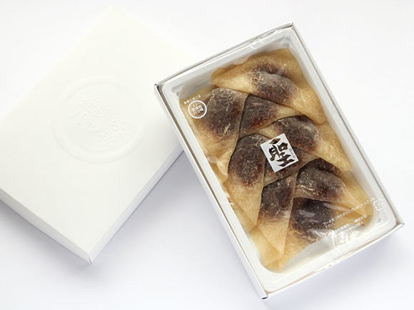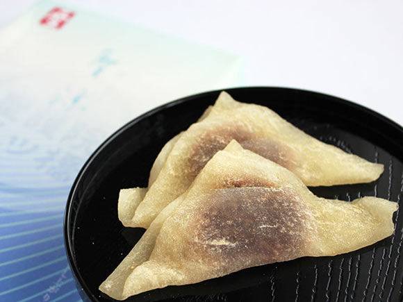 八ッ橋の皮には寒天や葛粉が入っているので、普通の八ッ橋と比べて透明感があります。