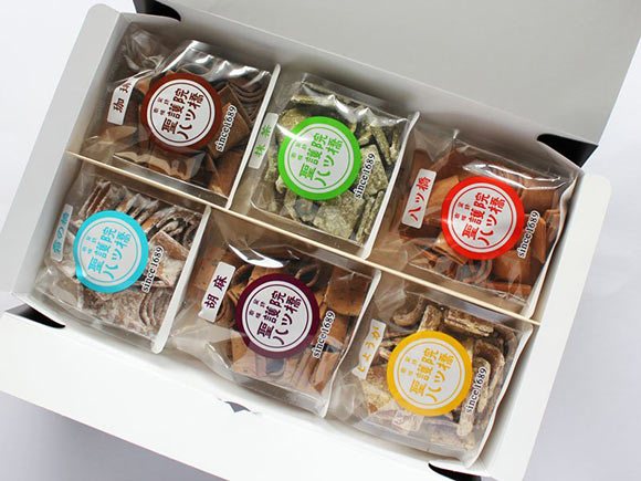 定番の「八ッ橋」をはじめ全部で6種類の八ッ橋が「小袋シリーズ」として販売されています。