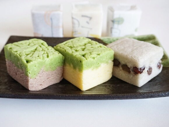 「山」は小豆入りの蒸しカステラと抹茶の味わいが相性抜群。