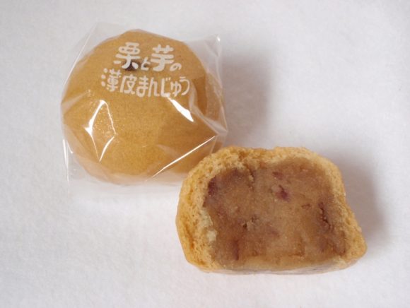 秋の味覚である、栗とさつまいもを使用した薄皮まんじゅうです。