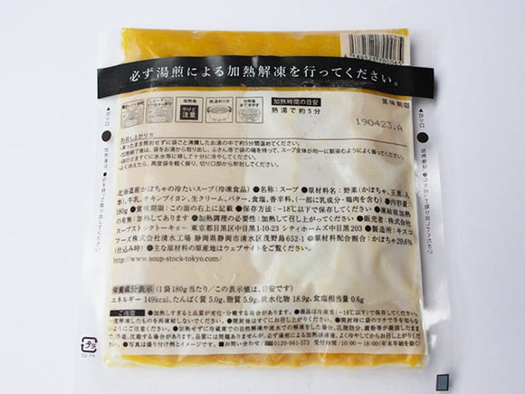 スープストックトーキョー 北海道産かぼちゃの冷たいスープの賞味期限は冷凍で60日間。