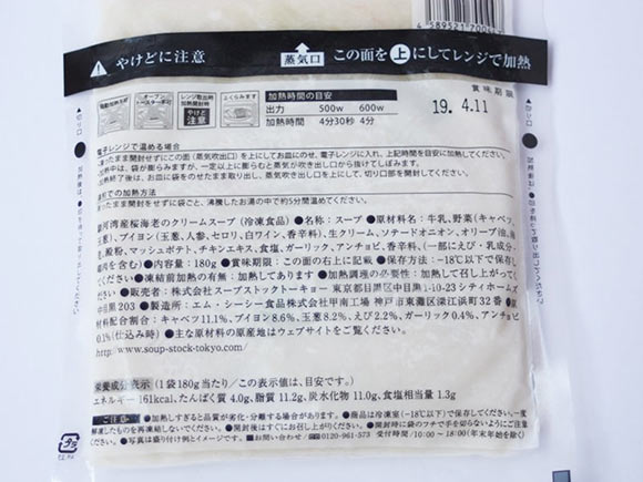 スープストックトーキョー 駿河湾産桜海老のクリームスープの賞味期限は冷凍で1年間。