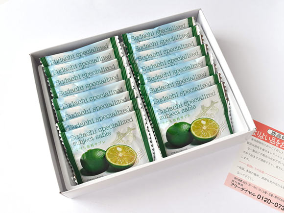 すだち専科サブレは、徳島県産のすだち果汁をつかって焼き上げたサブレ。