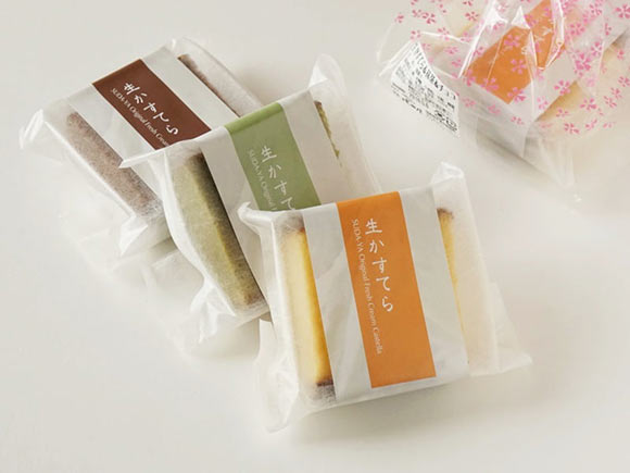 須田屋の生かすてらは、生クリームで仕立てた生タイプのカステラ。