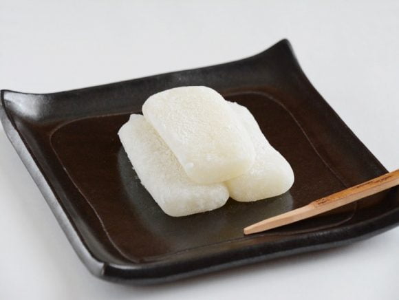 シンプルですが、真っ白でとても上品な餅菓子。食べる前から「あぁ、これは絶対おいしいに違いない」と思わせてくれる雰囲気を漂わせています。