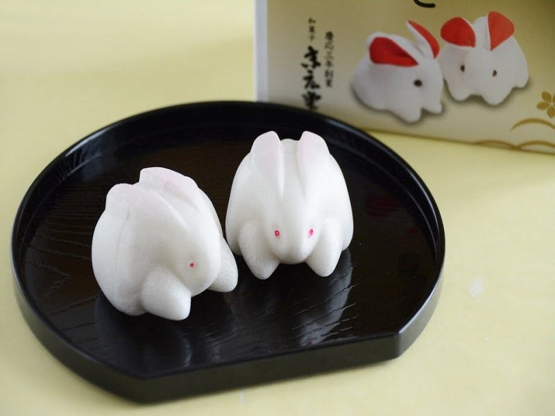 縁起のよい動物という視点でうさぎを調べてみますと、縁起菓子として多くのお菓子屋さんでうさぎ菓子がつくられているのがわかります。