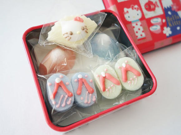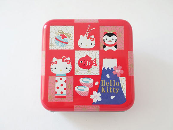 缶の中には、富士山や扇子の形をしたシュガーが入っていますよ。