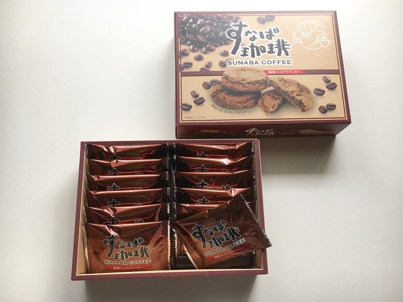 お土産として持ち帰ってもらいその名前を広げることも戦略の一つとし、このクッキーもすなば珈琲という名前を全面にアピールしたお土産商品になっています。