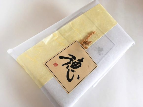 和紙にくるまれたパッケージには、本物の稲穂があしらわれているという粋なはからいが光ります。