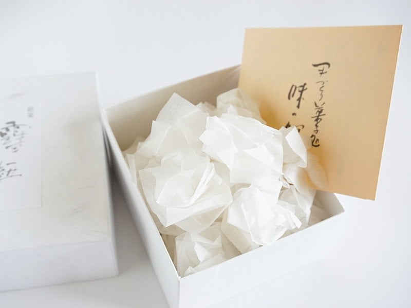 外箱から個包装、中身に至るまで真っ白なお菓子。