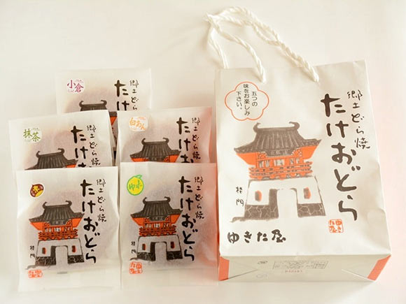 たけおどらはパッケージに佐賀県武雄温泉の桜門が描かれたどら焼き、佐賀県武雄市のお土産です。