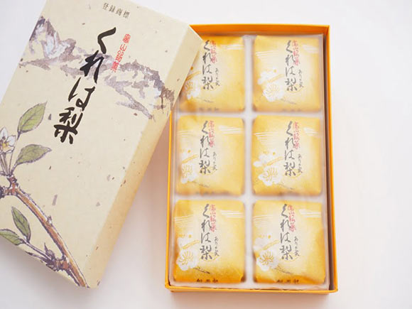 みずみずしい梨の風味をお菓子に閉じ込めたのが、「くれは梨最中」。