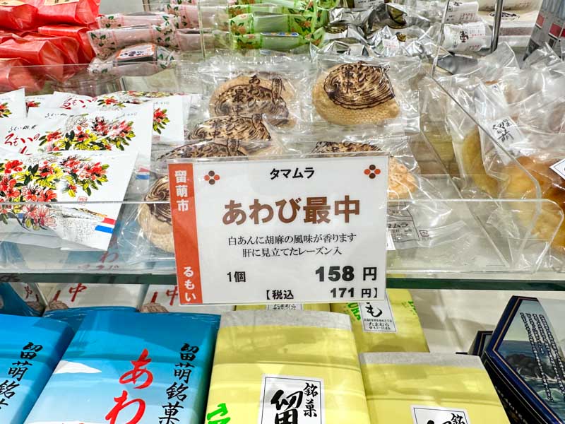 あわび最中は、道の駅るもいと留萌市の和洋菓子タマムラで購入することができます。