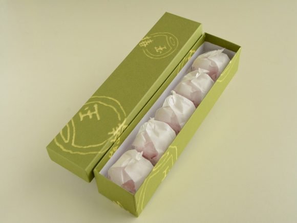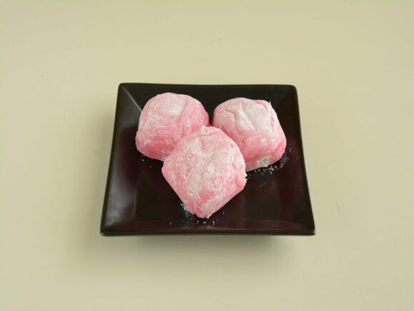 ピンク色のかわいらしい求肥(ぎゅうひ)の中に入った黄身餡が濃厚です。