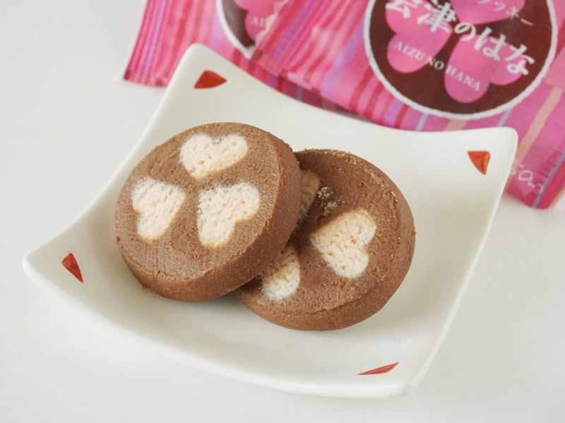 会津のはなは、会津を象徴する三葉葵をモチーフにした、苺とチョコのクッキー。