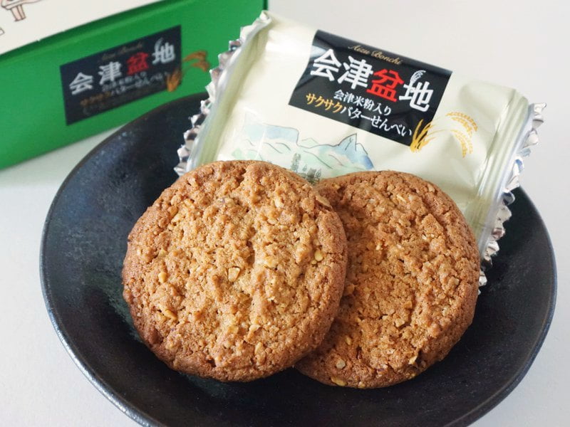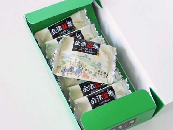 会津盆地は、会津産の米粉とバターを入れてサックリと仕上げた、洋風のせんべいです。