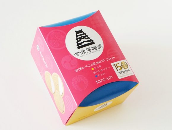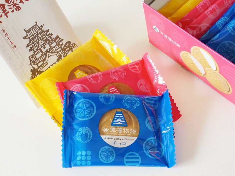 会津藩物語は、薄焼きのゴーフレットで3種類のクリームをはさんだお菓子。