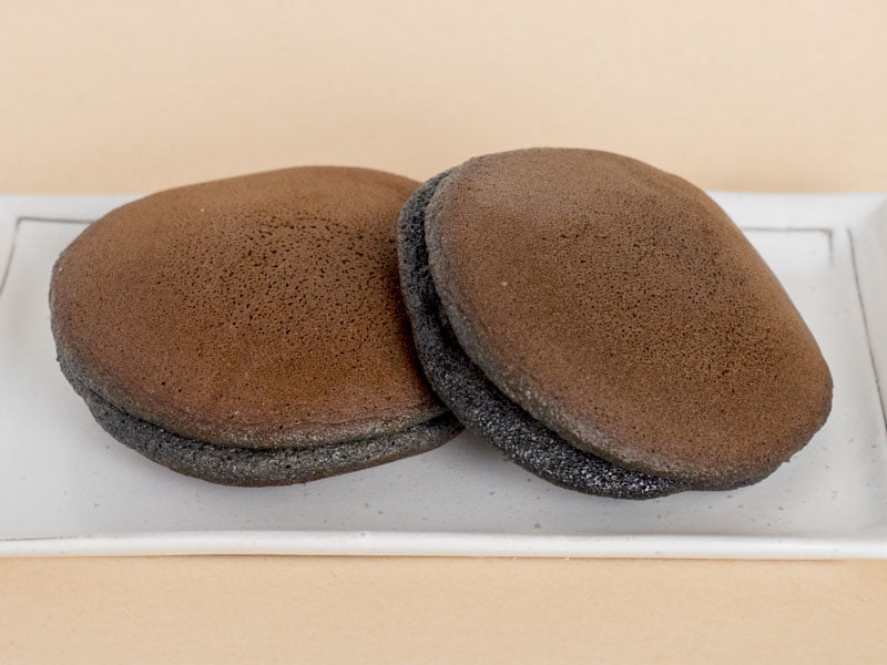 とても珍しい色のどら焼きで、インパクトがありますね。