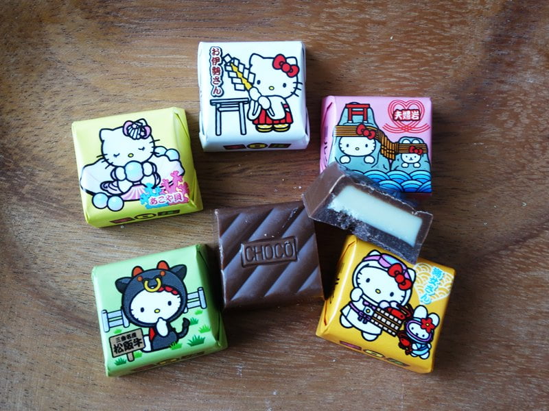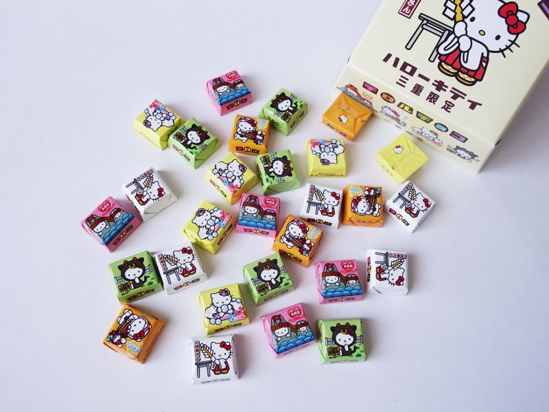 個包装には三重県ならではのイラストがデザインされていますよ。ハローキティ好きにも、チロルチョコ好きにも贈れますね。