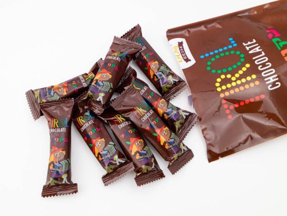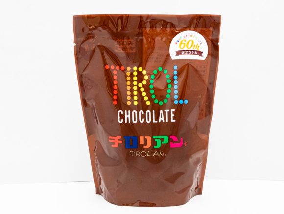 パッケージは、茶色の袋に「TIROL」のカラフルな文字が並んだチロルチョコレートをモチーフにしたデザインですよ。