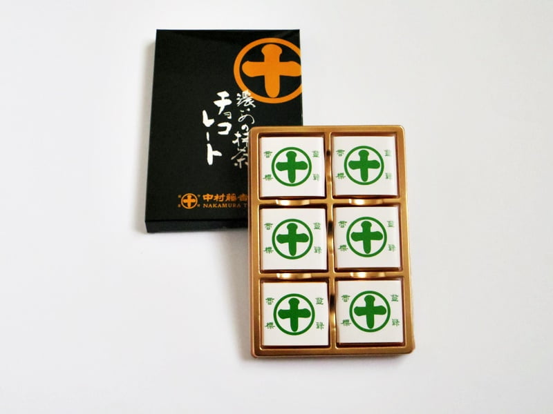 箱を開けると、中村藤吉本店の屋号があしらわれたパッケージのチョコレートが6枚。