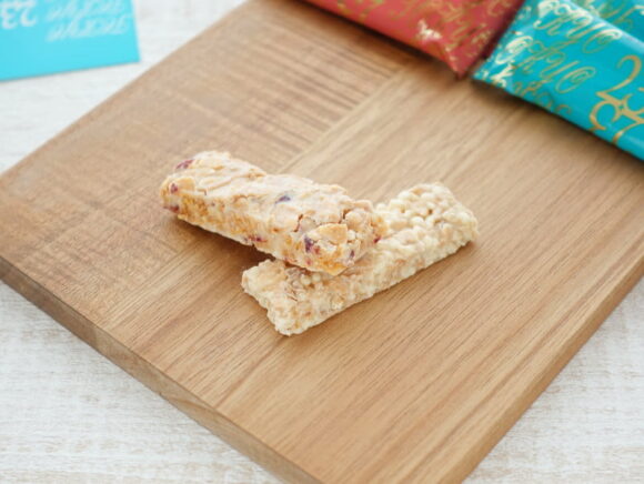 「ホワイトショコラ・クランベリー」は、アイスクリームにも使われているワッフルコーンを砕いて、酸味のあるクランベリーを混ぜ込み、ホワイトチョコで固めたクランチチョコ。
