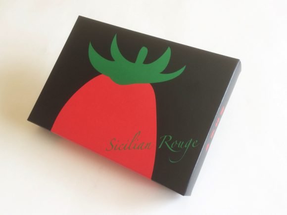 黒地に真っ赤なトマトの絵と文字が、モダンでおしゃれなパッケージが印象的。