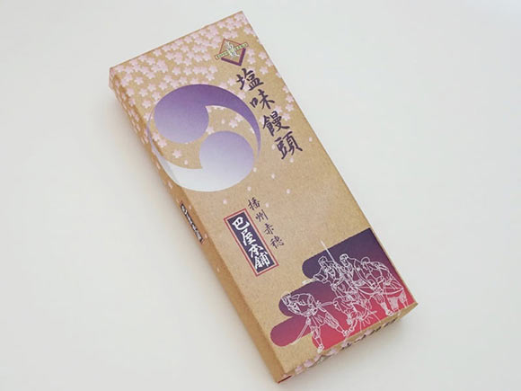 寒梅粉を使った皮に、赤穂塩を加えたこしあんを包んだ「塩味(しおみ)饅頭」は、赤穂市のおみやげの定番品。