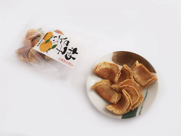 土佐の高知の柚子せんべいは、丸い生地を半分に折り畳んだ形状のおせんべいです。
