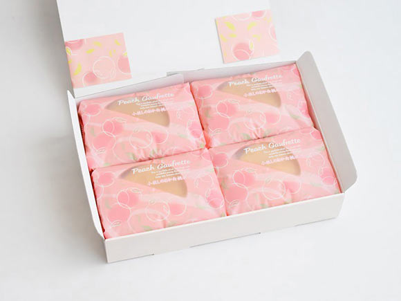 個包装を開けると桃の香りが広がる「白桃ゴーフレット」は、さわやかな味わいのお菓子。