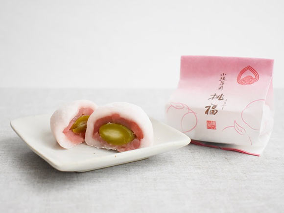 「桃福(ももふく)」は、幼桃(ようとう)の蜜漬けが中に入っている大福です。