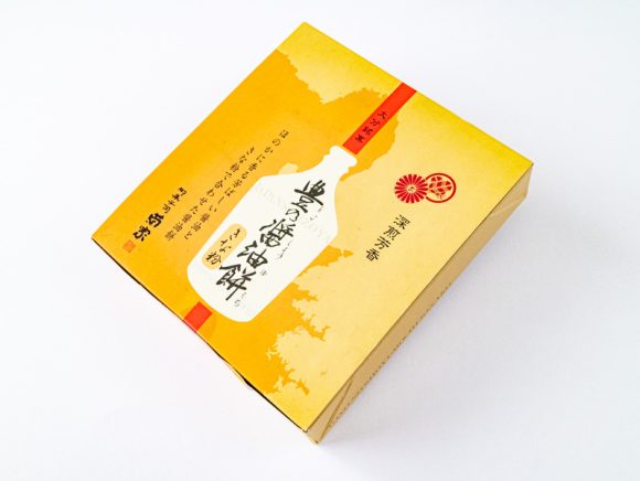 箱には豊後地方の古地図と南蛮貿易で醤油の輸出に使用されたコンプラ瓶のシルエットが描かれています。