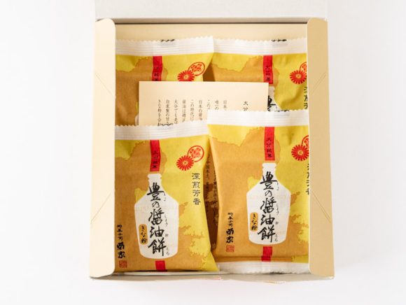 豊の醤油餅は醤油風味のお餅ときな粉を組み合わせた大分銘菓です。