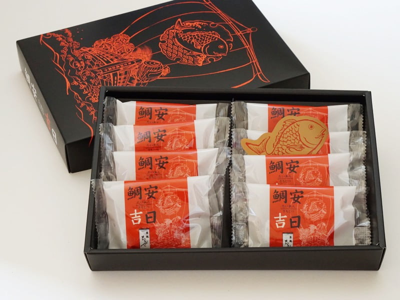 真っ赤なパッケージに、大漁船と鯛の絵柄がインパクト抜群。