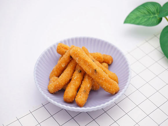 味噌かりんとうは、親指ほどの長さをしています。細長い形をしているので、カリカリッと食べやすくなっていますよ。